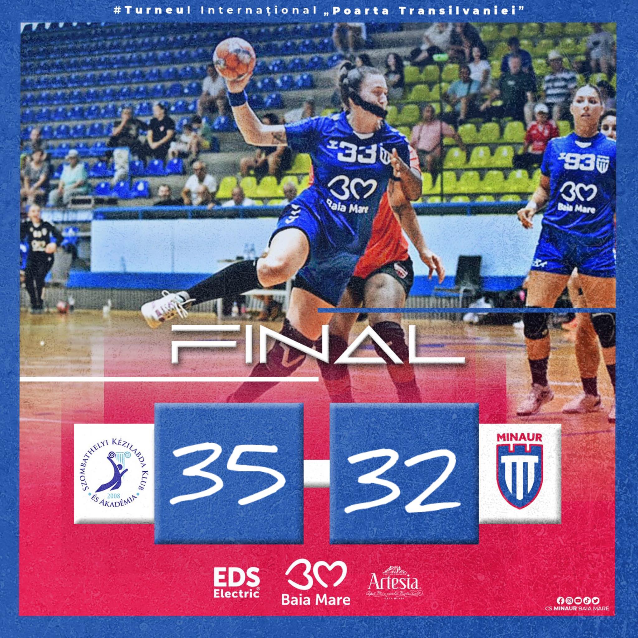 Vineri și sâmbătă, 15-16 august, CS Minaur a participat la turneul internațional „Poarta Transilvaniei”, care a avut loc în “Teraplast Arena” din Bistrița. Vineri, Minaur a pierdut 27-26 cu MKS Lublin (Polonia), astfel că sâmbătă a jucat pentru locurile 3-4, cu echipa maghiară Szombathelyi Kézilabda Klub és Akadémia (29-39 cu Bistrița, în prima zi). Din păcate, am pierdut și acest al doilea meci, 32-35 (13-17) și am terminat turneul pe locul 4.