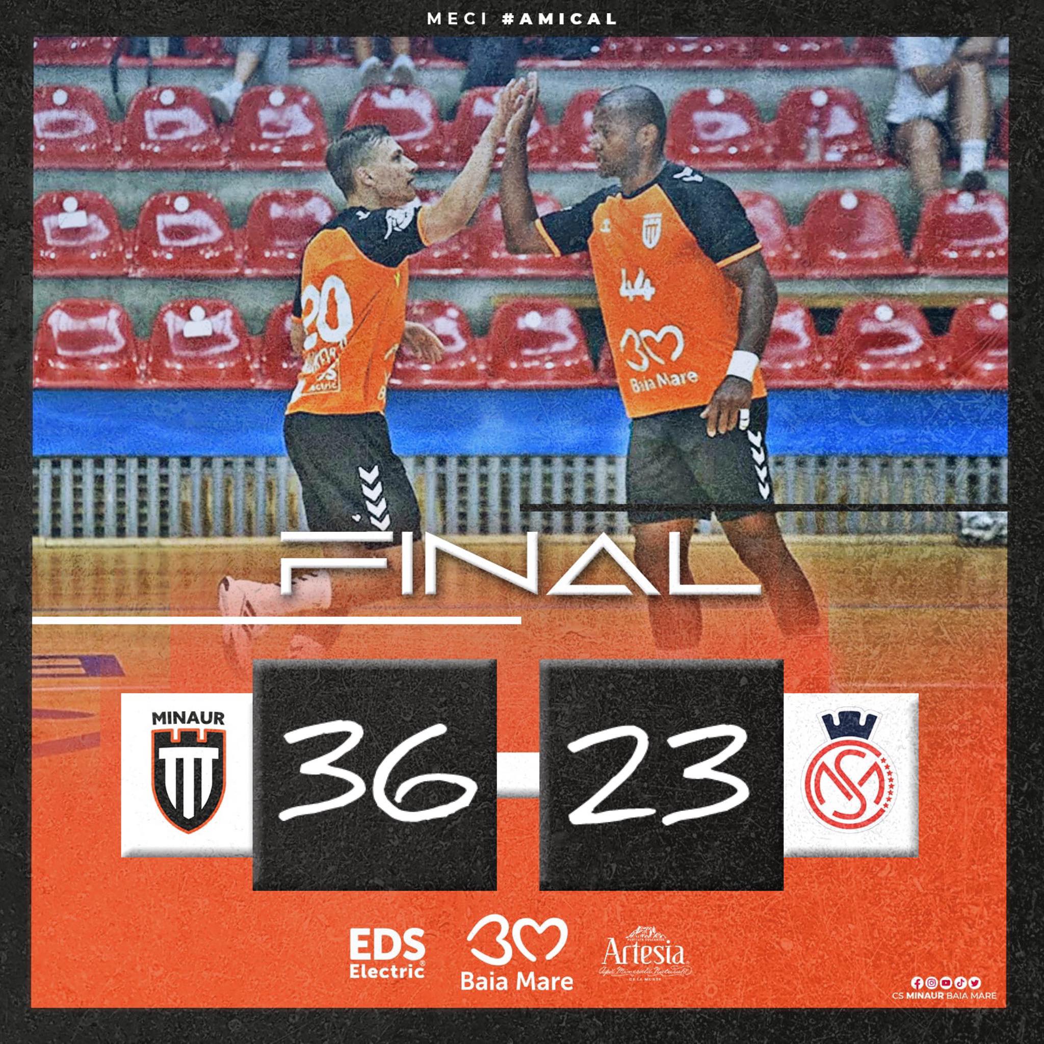 Luni, 11 august, de la ora 18.00, echipa masculină de handbal a CS Minaur a disputat primul amical al verii, în Sala Polivalentă, adversară fiind divizionara secundă CSM Oradea. Echipa noastră s-a impus cu scorul de 36-23 (17-9) și pregătește startul sezonului 2025-2026, unde va lupta pe patru fronturi: Liga Zimbrilor (prima etapă este programată pe 7 septembrie, în deplasare, la Suceava – să vedem însă când va fi reprogramat meciul), Supercupa României (Bistrița, 21-22 august – vom juca în semifinale cu HC Buzău), EHF European League (primul tur, cu islandezii de la Stjarnan, 30 august acasă și 7 septembrie în deplasare) și, nu în ultimul rând, Cupa României.