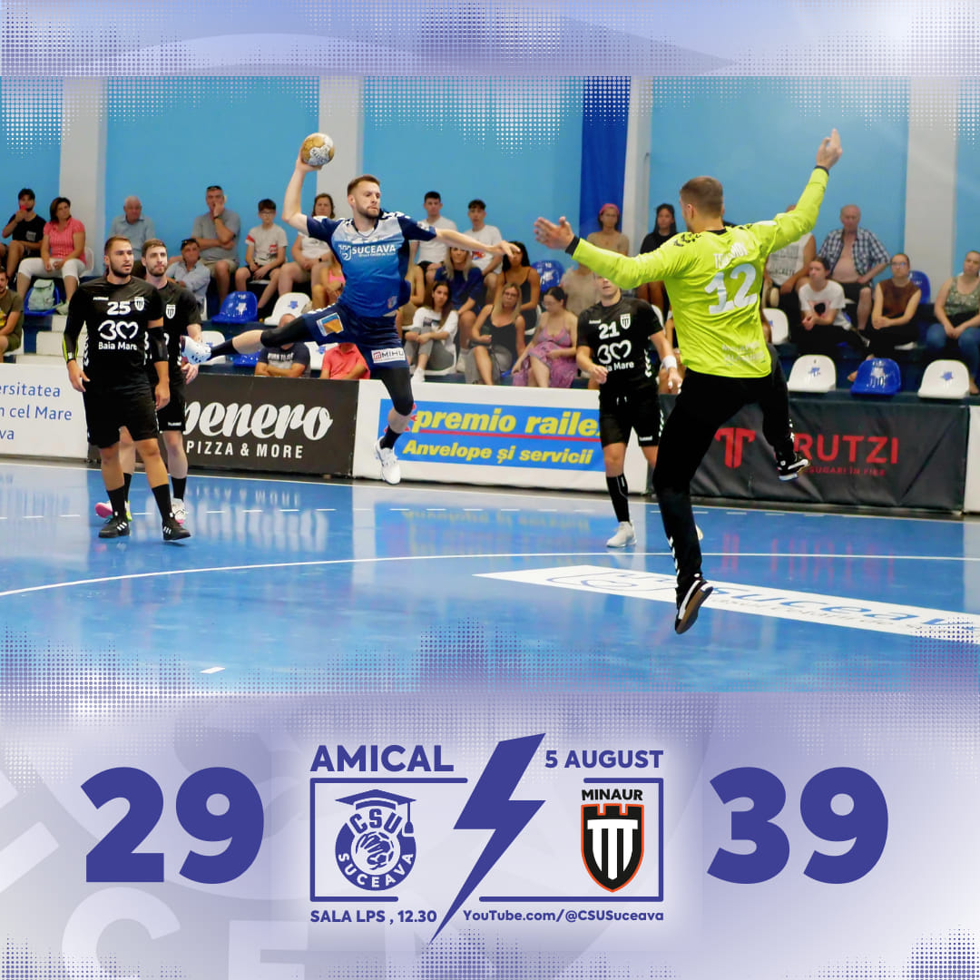 Echipa de handbal masculin a CS Minaur Baia Mare a participat, vineri și sâmbătă, 4- 5 august, la Memorialul “Mihai Mironiuc”, turneu amical organizat de CSU din Suceava. În prima zi, băieții noștri au pierdut cu 29-38 în fața echipei CSM Bacău, dar s-au revanșat în cel de-al doilea meci, când au învins echipa gazdă, CSU din Suceava. Minaur a dominat meciul de la început la sfârșit, reușind să se desprindă încă din start. Au avut și câteva perioade excelente, în care a marcat în serie (cea mai mare a fost de șase goluri, de la 10-13 la 10-19).